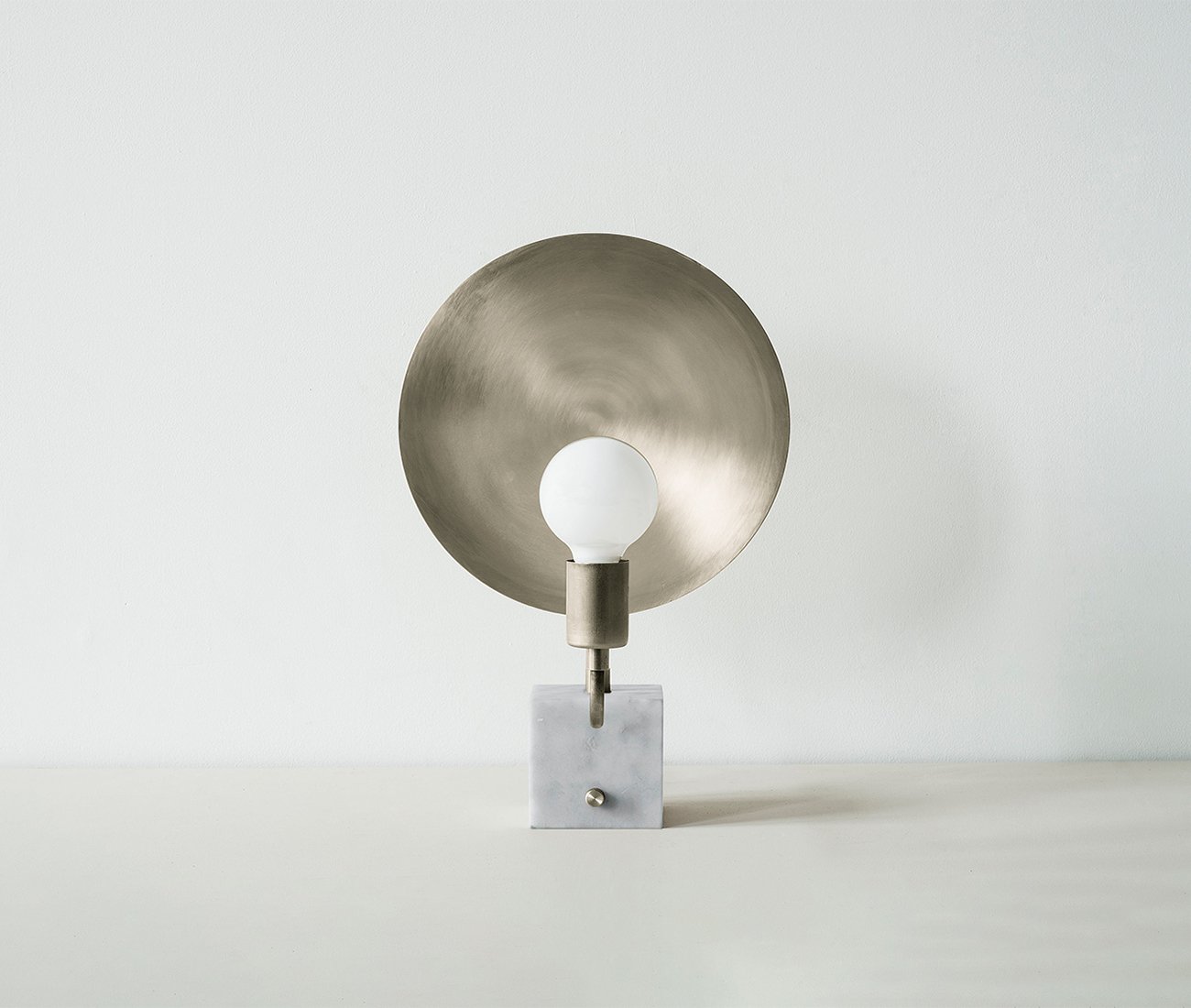 Dubbed Helios, after the Greek sun god, Workstead’s sculptural table lamp evokes the cosmos with its radiant glow. Set on a Carrara marble base, a spun-metal dish orbits a single dimmable bulb, directing or deflecting light as needed. Available in hewn brass, hand-finished bronze and brushed nickel, $1995 at Workstead.