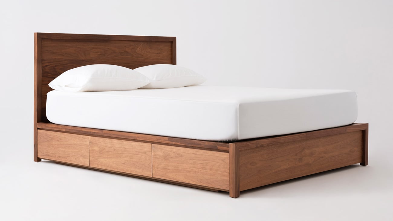 5 Marcel Storage Bed Walnut might be the nicest wood to wake up to on chilly mornings. The best thing about Marcel, however, is that you can customize the storage drawers: choosing to have them on one, or both sides of the bed. From $950.