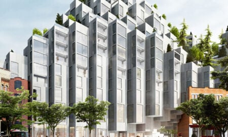 Superstar Bjarke Ingels continues his streak of playful, alpine-inspired housing developments with this proposal for a 500 apartment complex on “King Street West”. The mass of stacked boxes resembling a pixelated mountain range features five peaks which will range in height from 15 to 17 storeys. At ground level, the development incorporates three heritage buildings, as well as a passageway and courtyard. In keeping with the nature of the project, terraces will be filled with lush greenery.