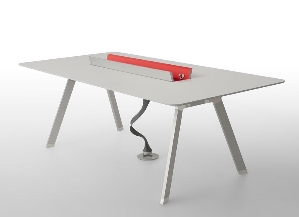 Toronto’s Fig40 designed these tables in sizes from cozy to boardroom, with options for power, data and video. They come in veneer, laminate or glass, with an aluminum base. See it here.