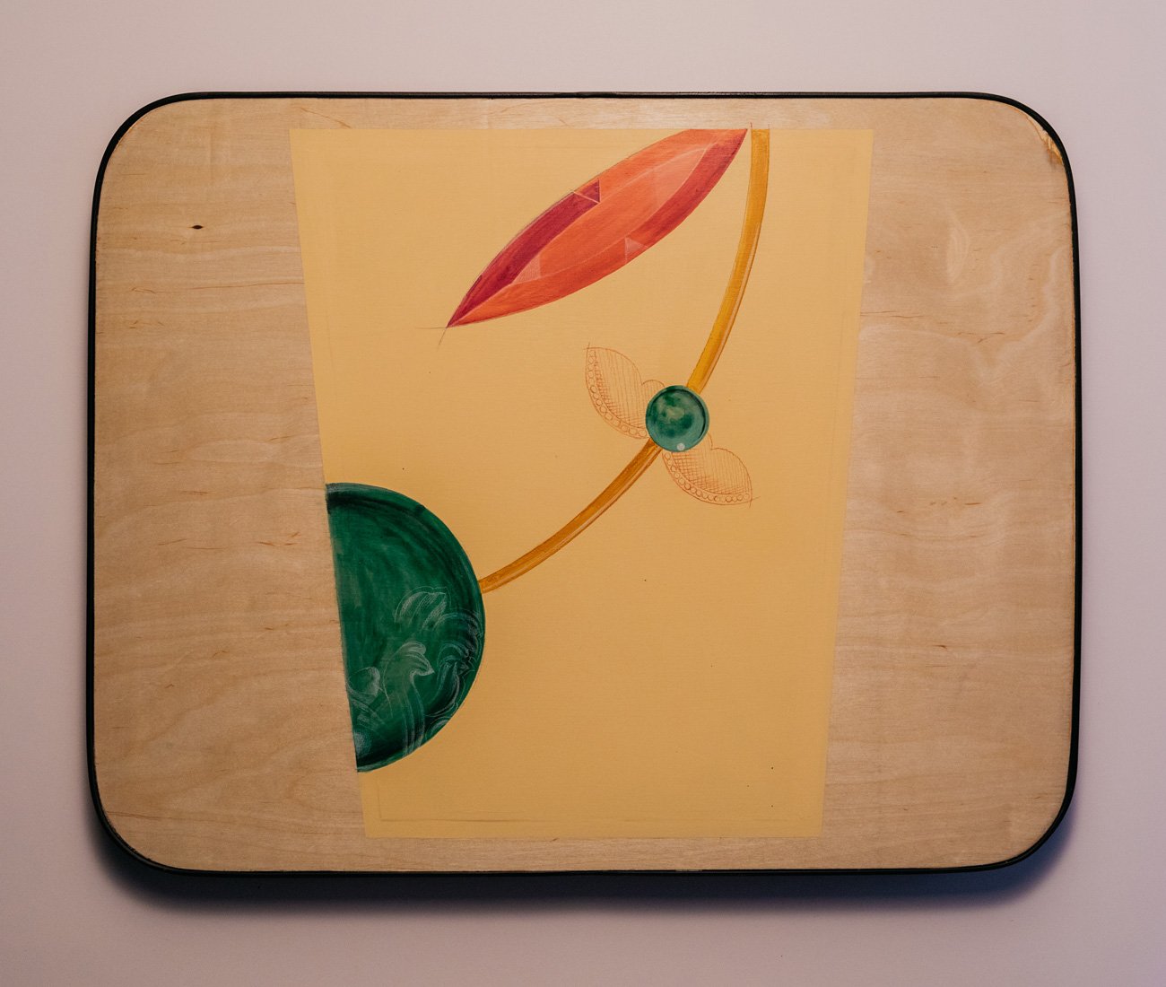 Mini Bar also features a wall-to-wall mural by Rajni Perera that depicts a lavishly dressed figure surrounded by jewels, curling banana leaves and bird of paradise stalks. The jewel motifs, inspired by gem settings found in vintage 1920s Cartier sketches, spill onto the tabletops.
