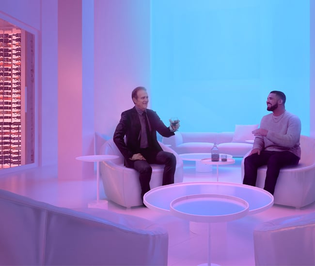 “We wanted to make sure the entourage we integrated within the spaces were a close depiction to who Drake interacts with,” Valmeo explains. “We paid careful attention to who we included in the spaces to really tell a story.”