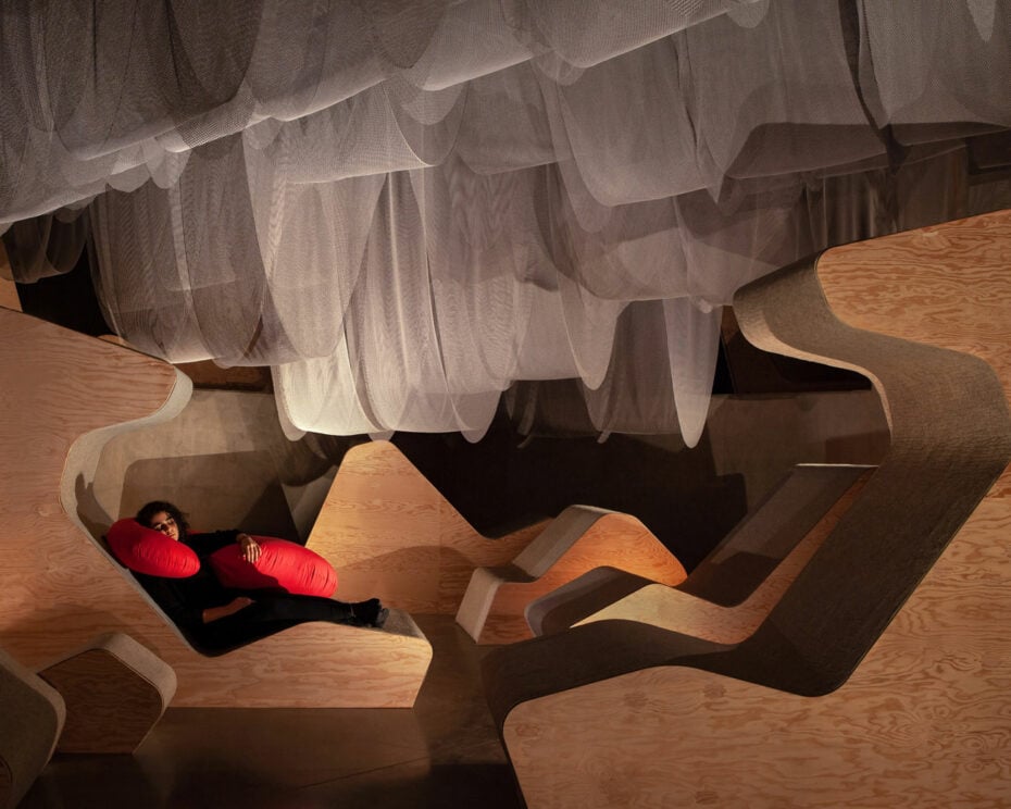 Curated by Professor Richard Sommer and New York-based designers, Pillow Culture, the immersive installation prompts participants to ask: Have our tech-infused lives caused us to forget the benefits and pleasures of losing ourselves in states of repose and reverie? What would happen if we disconnected from standard time and external stimuli within a dream-like space specifically designed for relaxation, reflection, and repose?