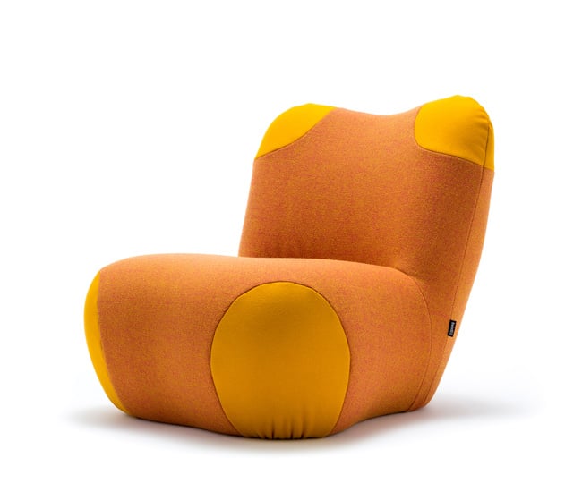 It’s hard to resist plunking down in Freistil by Rolf Benz’s plump throne. The eccentric chair’s corner accents can be coordinated with the body fabric, or done in a contrasting colour for a panda-like look.