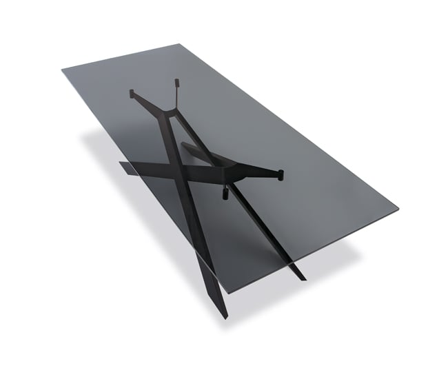This table’s lacquered metal legs evoke railway crossings, while its smoked glass top recalls the exhaust that billowed out of old locomotives. It’s available in an extendable version, too. selenefurniture.com
