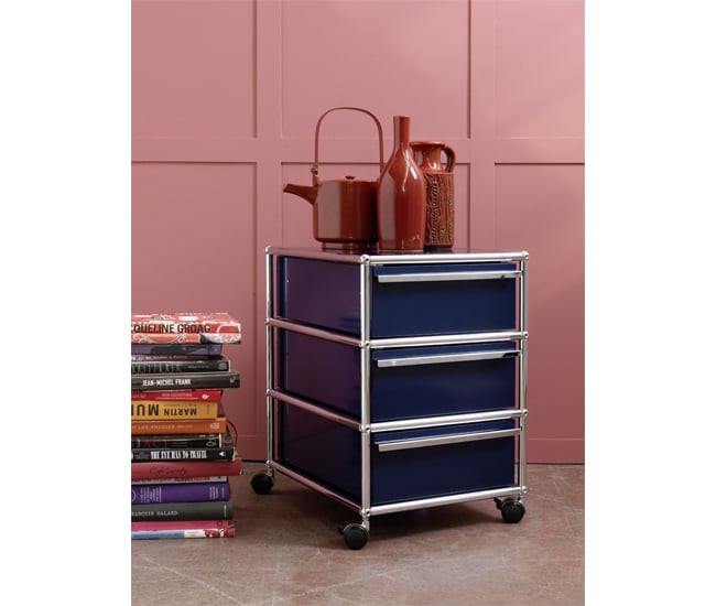 Thanks to its fusion of polished and industrial styles, this glossy powder-coated steel filing cabinet is versatile enough to serve as a nightstand when it comes time to host the in-laws.