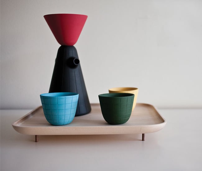 The made-in-Toronto Sucabaruca takes the love of coffee to a new level. Designed by Luca Nichetto for Mjölk, the toy-like, stackable ceramic carafe, cups and filter are rendered in matte jewel tones and coupled with a maple serving tray. lucanichetto.com