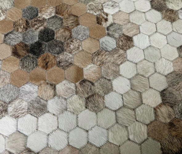 Hand stitched in Belgium, this patchwork of leather hexagons lends any floor a natural yet sophisticated look. limitededition.be