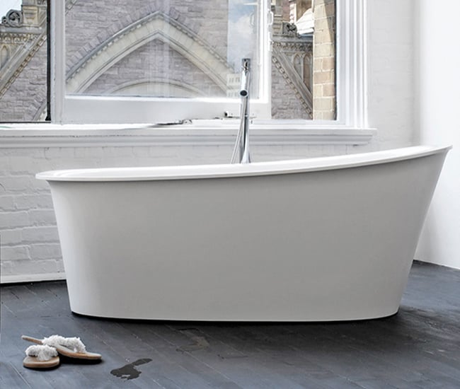 The Montreal manufacturer curled the rim of its latest tub, for a subtly rounded edge that supports resting heads. It comes in the company’s proprietary WetMar, a natural solid surfacing material, in a matte or gloss finish. wetstyle.ca