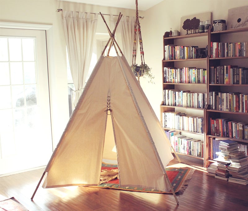 Kids can play inside PlayHaven’s handmade teepee and conceal their mess. A canvas stretched over bamboo poles, and leather lacing closes it up for privacy. $205, etsy.com/shop/playhaven