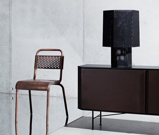 Foscarini and Diesel Living’s latest collaboration encases a light in two layers of perforated sheet metal, which cast a spectacular geometric pattern onto nearby walls. $1280, at Casa di Luce