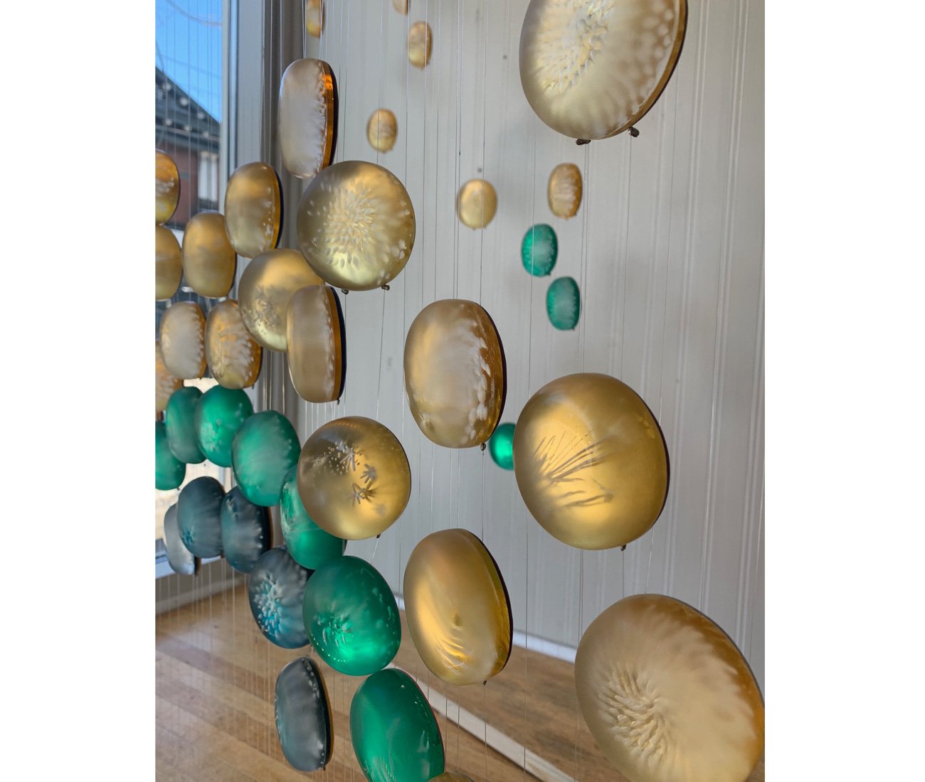 Elegant, peaceful and serene – this window installation by contemporary jeweller, Emma Piirtoniemi, has us feeling all the ‘feels’. Cascading at varying heights but working as one piece, 122 carved and polished acrylic pendants hang in conversation with the hustle and bustle of Roncesvalles Avenue. Speaking collectively to our outward experiences and our internal journeys, we are invited to pause and get curious for just a moment. “I expand the intimate, individual experience of jewellery objects to become shared by many at once.” The work is an explosion of detail intended to overpower our senses, staying true to its name – ‘feels’.